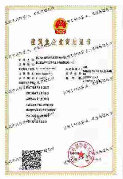 浙江清水建設(shè)安裝集團有限公司成立于2013年,注冊資金6688萬元。集團具有消防設(shè)施工程專業(yè)承包壹級、城市與道路照明專業(yè)承包壹級、電子與智能化專業(yè)承包壹級、建筑裝飾裝修專業(yè)承包貳級、防水防腐保溫專業(yè)承包貳級、市政工程施工總承包貳級、機電工程施工總承包貳級、建筑工程施工總承包貳級、電力工程施工總承包貳級、機電工程專業(yè)承包貳級、環(huán)保工程專業(yè)承包貳級、古建筑工程專業(yè)承包貳級、特種工程結(jié)構(gòu)補強專業(yè)承包、建筑施工勞務(wù)作業(yè)專業(yè)承包(憑建筑業(yè)企業(yè)資質(zhì)證書經(jīng)營